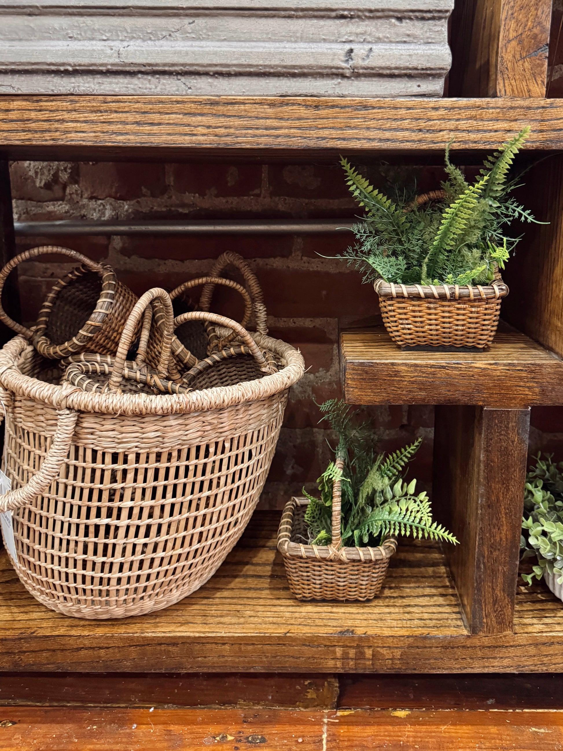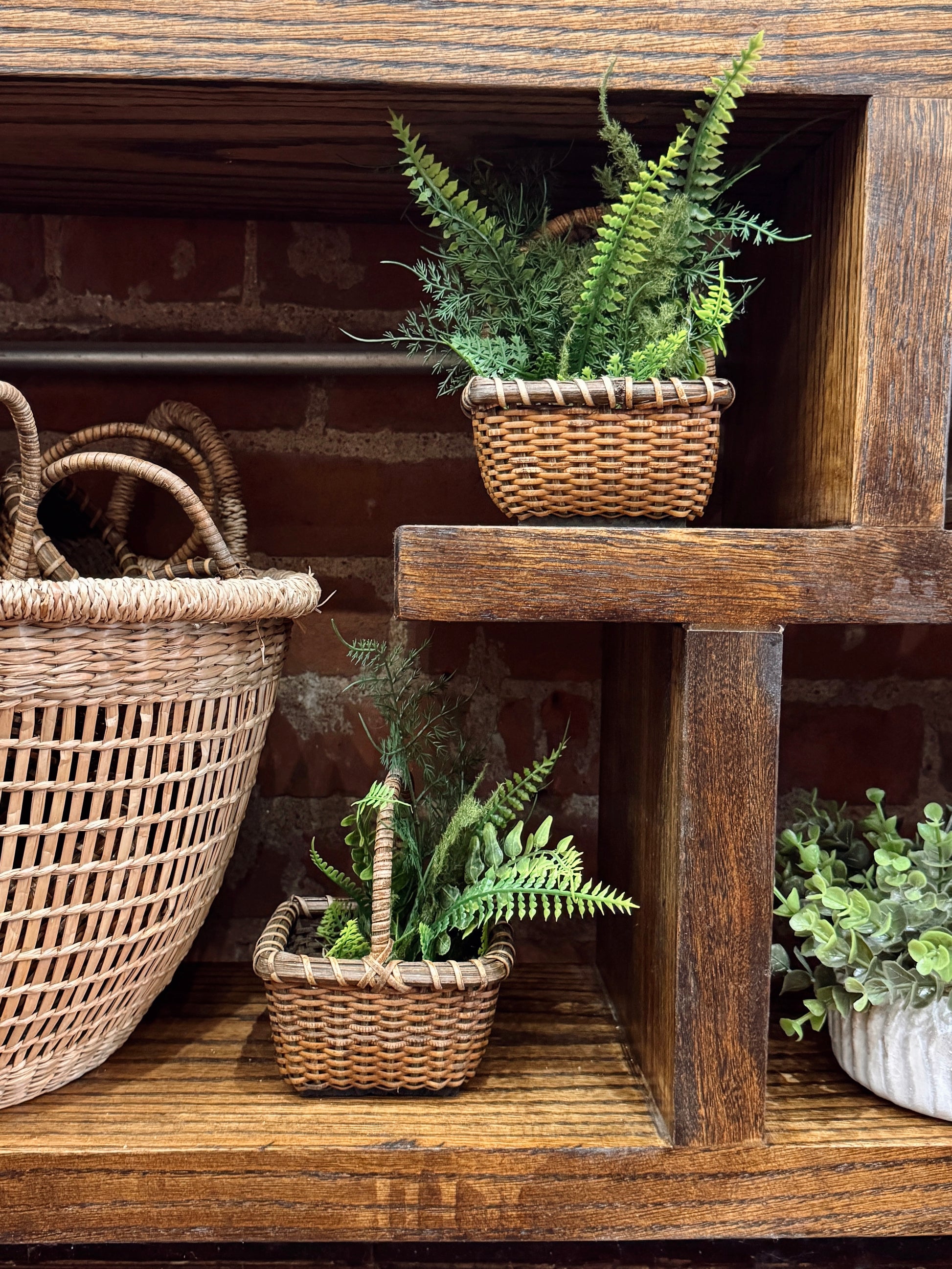 These mini handwoven rattan baskets are the sweetest little accent for gifting or styling. Each one measures approximately 4.25" x 4.25" x 5.25" and comes in one of four charming designs. Perfect for holding small gifts, greenery, or decorative accents on shelves and tables. A thoughtful touch of texture for any space.