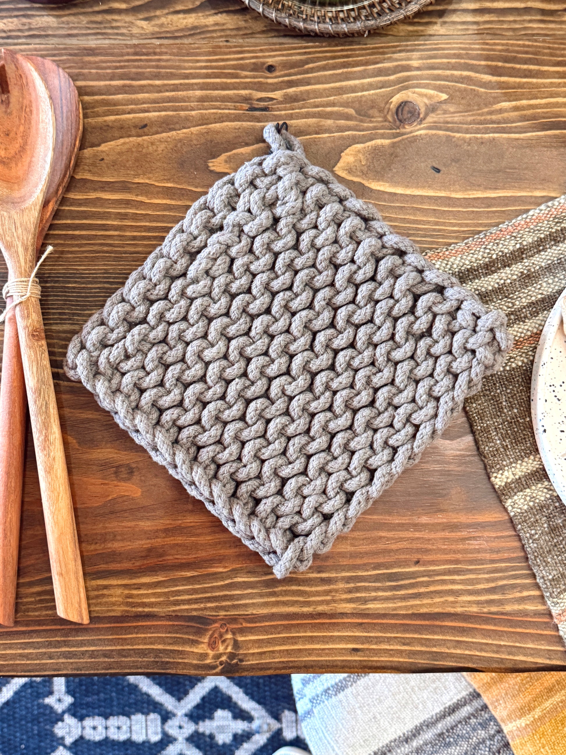 A customer favorite for good reason—these cotton pot holders are as functional as they are stylish. Perfect for everyday use and pretty enough to display on a kitchen hook. Available in three colors to suit any style.