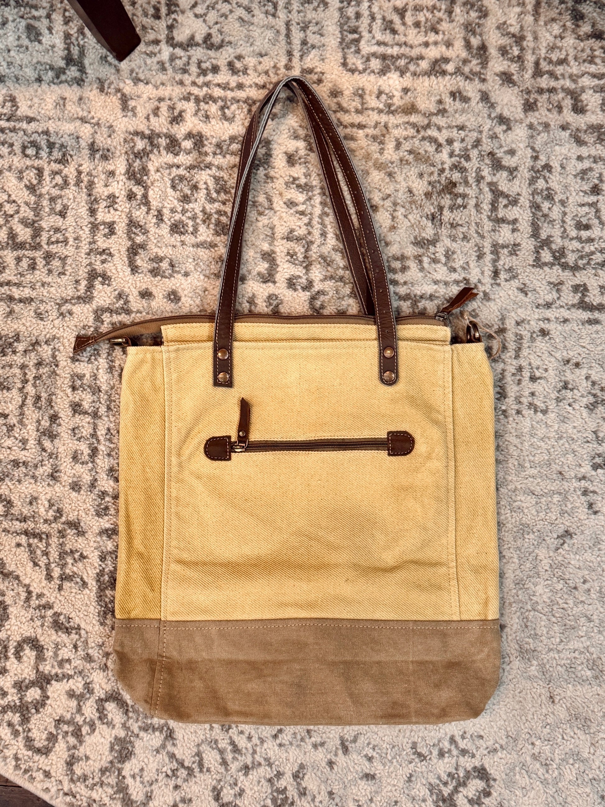The Paris Tote combines style and function with its spacious 13.5" x 17" x 4" design. Made from repurposed tent and canvas materials, it’s durable, eco-friendly, and perfect for everyday use—from workdays to weekends.