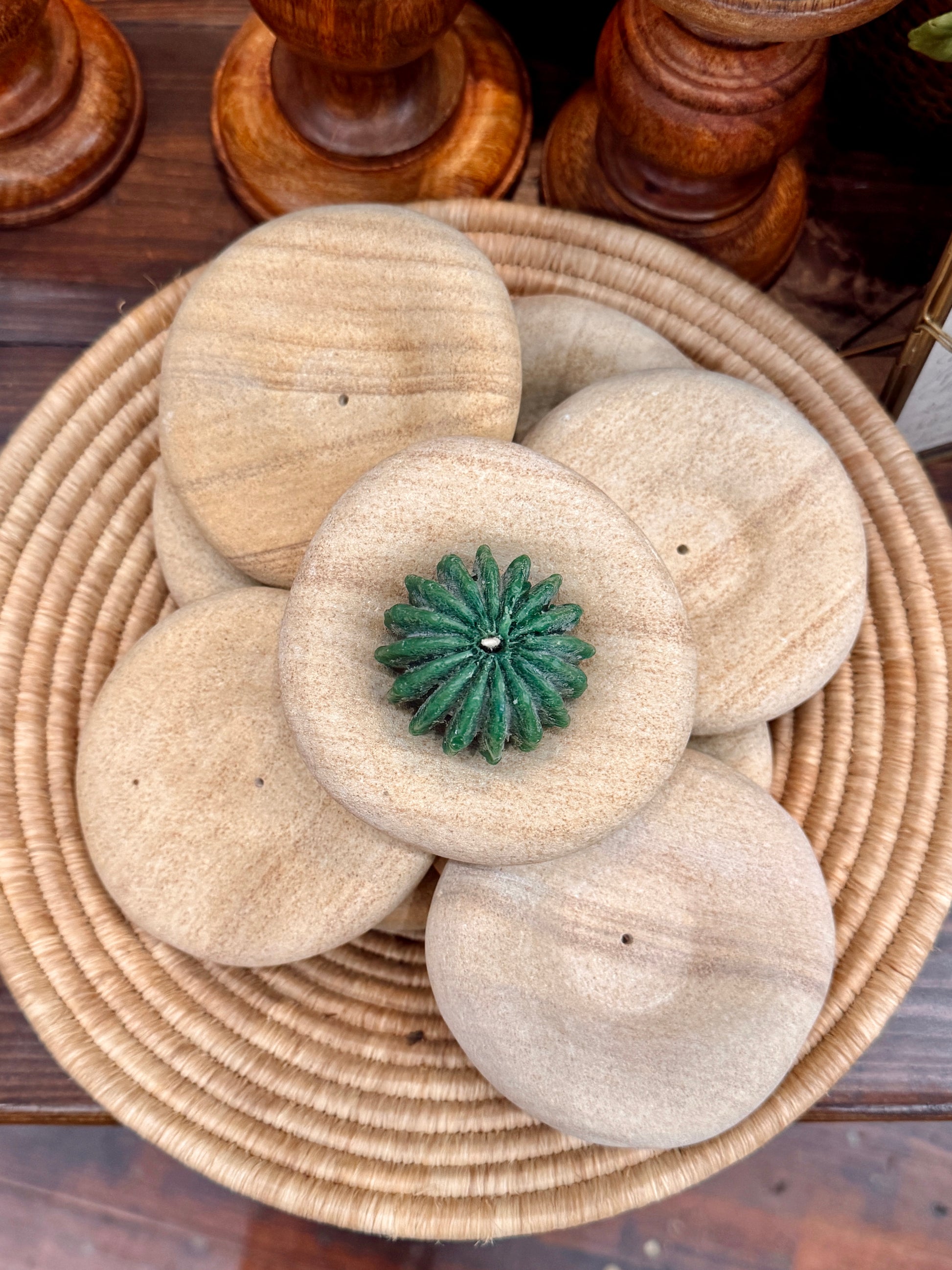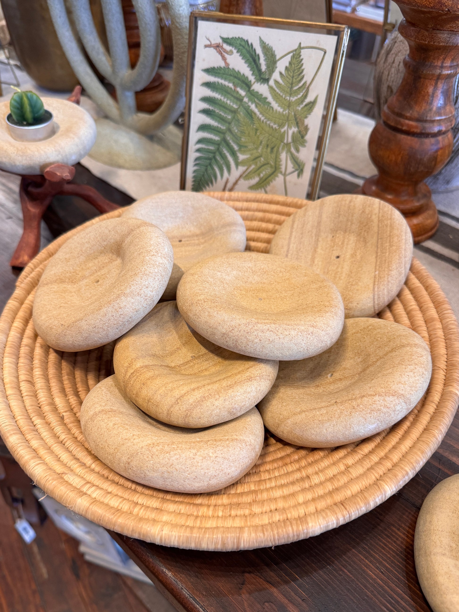 Crafted from natural sandstone with an organic shape, this 4" holder is both simple and sculptural. Use it to hold incense sticks or a tealight candle—perfect for adding a calm, earthy touch to any space. Its warm, natural tone pairs beautifully with any décor.